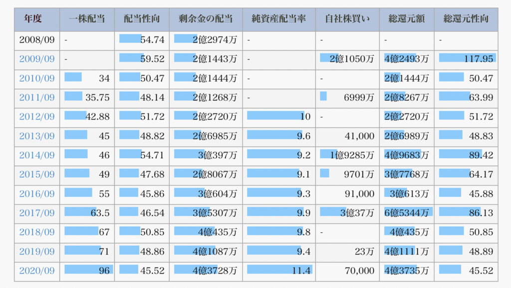 そして会社の体力ともいえる自己資本比率が脅威の86.8%とかなりの資産を蓄えており少なくともすぐには倒産しない企業だと言えます。